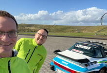 Als wir vor die „E-Charger 600“ rollen, wartet Tobias Trauernicht schon auf uns. Der sympathische Ingenieur ist im hauseigenen E-Golf gekommen, denn unser Hybrid verträgt den „schnellen“ DC-, also Gleichstrom, nicht. Ab jetzt ist auch Schluss mit Sonne, der Wind lässt den Regen waagerecht durch die Luft schießen.